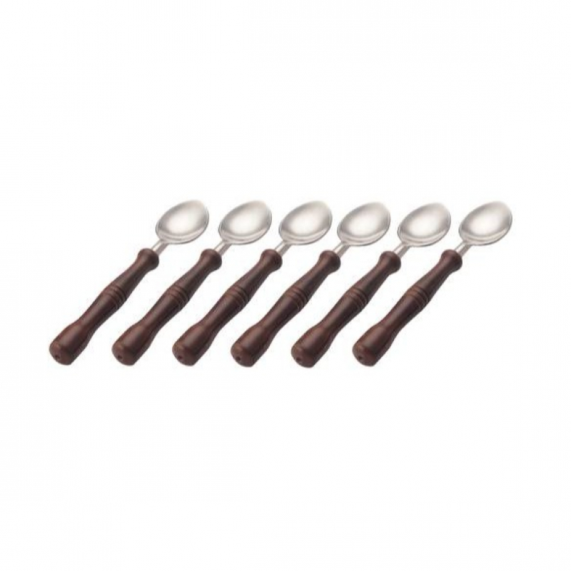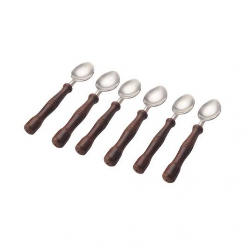 Amaran Wooden Handles Stainless Steel Dessert Spoons Set - Set Of 6