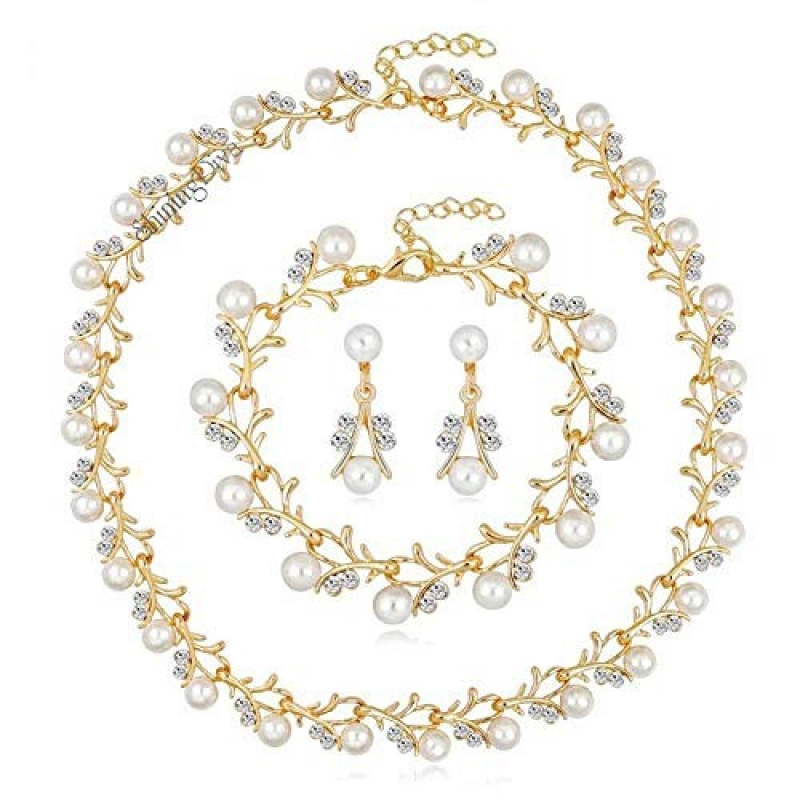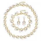 18K مطلية بالذهب قلادة اللؤلؤ أقراط سوار مجوهرات مجموعة للنساء