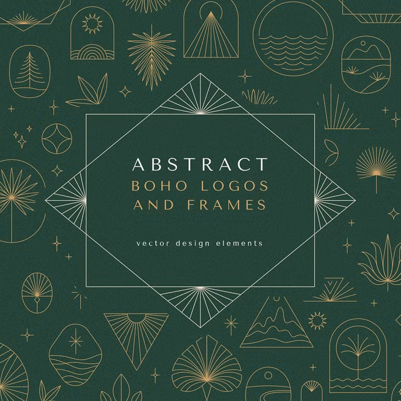 الشعارات البوهيمية - مجموعة جديدة من عناصر وقوالب تصميم المتجهات. الشعارات المجردة وعناصر العلامات التجارية بأسلوب خطي بسيط عصري وشعارات وشارات لاستوديوهات التصميم والمحلات التجارية والشركات النسائية والمنتجات المصنوعة يدويا.