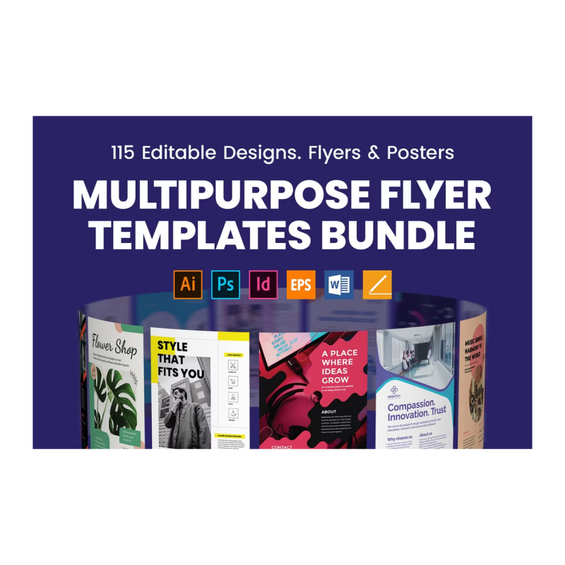 يمكن استخدام قالب النشرة الإعلانية وحزمة تصميم الملصقات لأي نوع من الأغراض التجارية والشخصية. قوالب قابلة للتحرير وتخطيطات سهلة التخصيص للغاية مع التفاصيل الخاصة بك!