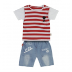 بولد N أنيقة شريط الكرتون نصف كم الأولاد تي شيرت مع الدنيم الثقيلة السراويل