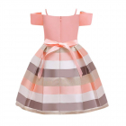 فستان حفلة طباعة شريط من القطن والبوليستر باللون الوردي