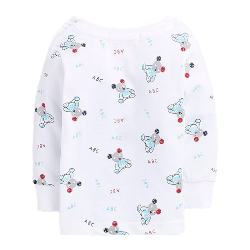 طقم بيجامة بنقشة قطن للأولاد من مزيج القطن وبيجامة بلون أبيض