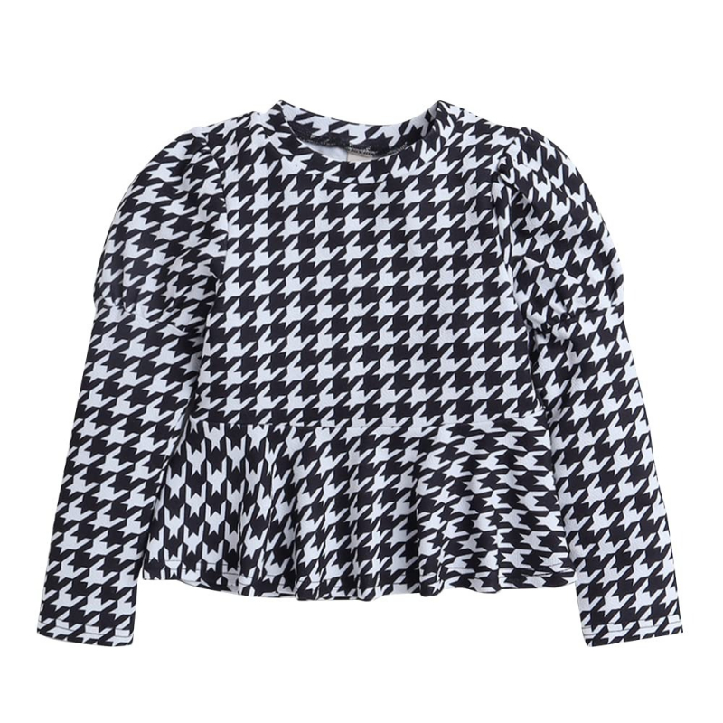 الحجلة الفتيات البوليستر Houndstooth طباعة بلوزة وتنورة مجموعة في اللون الأسود