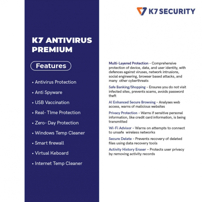 K7 مكافحة الفيروسات بريميوم -- 1 المستخدم ، 1 سنة (تسليم البريد الإلكتروني في 2 ساعة -- لا CD)