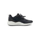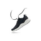 زوج من أحذية المشي السوداء ، مع تصميم منتظم ، تفاصيل الأربطة
