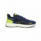 زوج من الأحذية الزرقاء الكحلية، وتصميم منتظم، وتفاصيل الأربطة