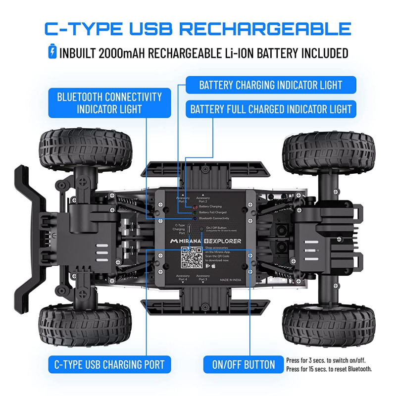 ميرانا 4WD إكسبلورر C-نوع USB قابلة للشحن بلوتوث التطبيق تسيطر عليها أرسي لعبة سيارة