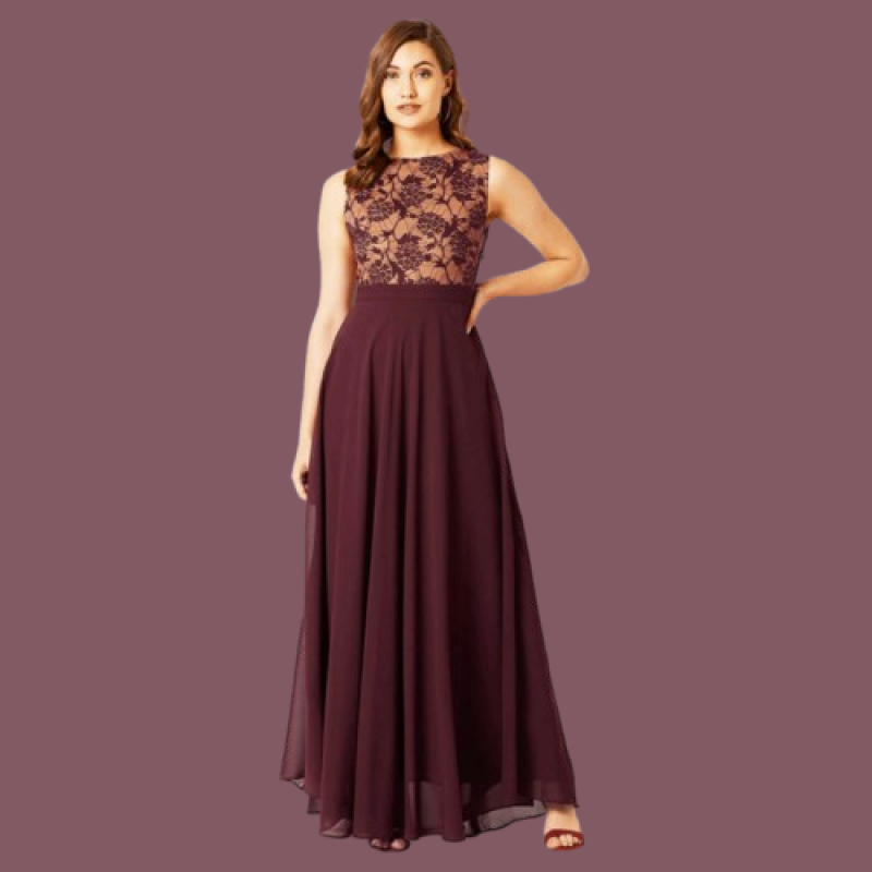 ملكة جمال تشيس المرأة الخزامى جولة الرقبة بلا أكمام الصلبة الدانتيل تراكب فستان ماكسي