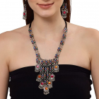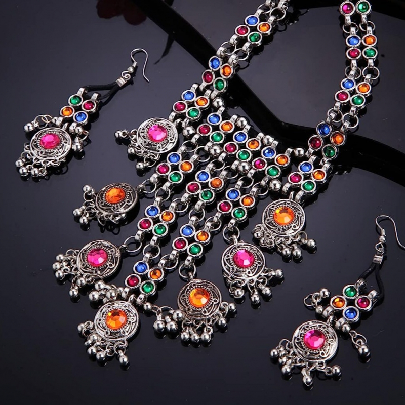 طقم مجوهرات قلادة فضية مؤكسدة للنساء