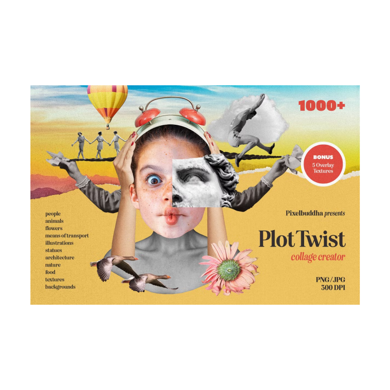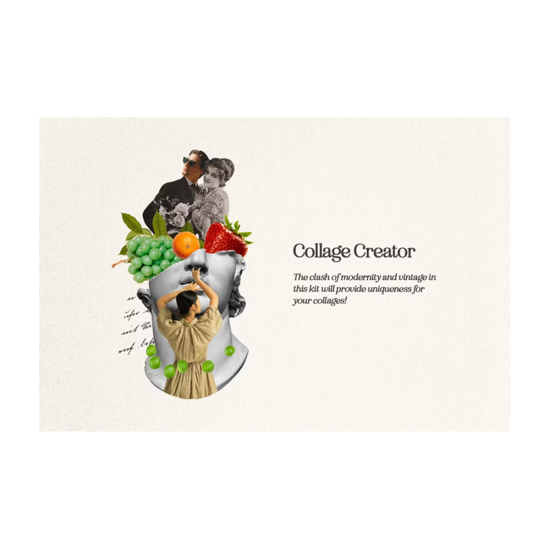 لا ينبغي قمع الأفكار الأكثر تطرفا ولكن يتم تسليط الضوء عليها لأنها تتمتع بإمكانية عالية لتصبح اختراقا آخر. أنت محظوظ لأنه مع هذه المجموعة من عناصر الكولاج 1255 المصممة والمنظمة بعناية ، من السهل عرض جميع أنواع المفاهيم مع مجموعة واسعة من العناصر التي تم تسليمها. من بين المواد المدرجة هناك أجزاء الجسم والنباتات والأشياء والهندسة المعمارية والتماثيل والنقل والطعام والرسوم التوضيحية والطبيعة وعناصر القرطاسية. القصص الغريبة ، أغلفة الكتب ، الدعوات الشخصية ، الملصقات الداخلية ، النشرات الإخبارية المرحة ، لوحات المزاج الملهمة - قم بتسمية أي مهمة ، وستتعامل معها بالتأكيد بأفضل طريقة ممكنة. لإنهاء الصورة المجمعة الأصلية ، قم بتلميعها بخلفية أو مواد ورقية ، مما يساهم في الانطباع العام للمشهد. فيما يلي قائمة بجميع المجموعات المضمنة.
