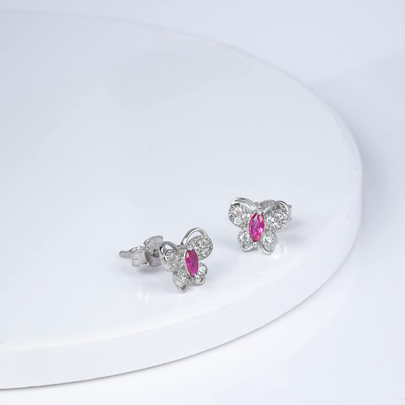 الفضة الاسترليني البوب الوردي ترصيع فراشة ترصيع