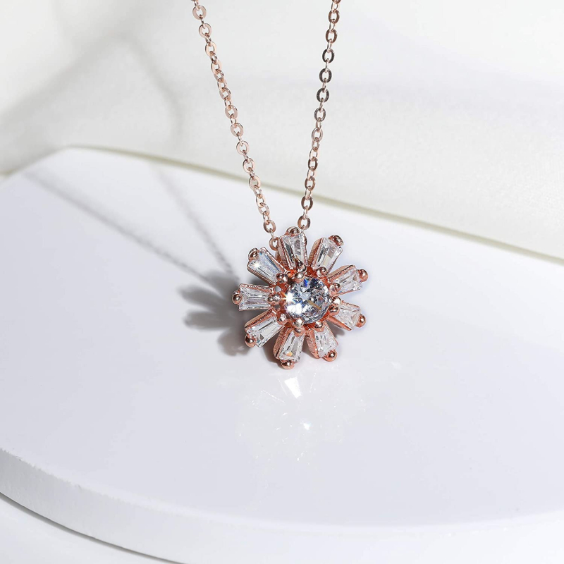 الفضة الاسترليني روز الذهب الرغيف الفرنسي زهرة قلادة مع سلسلة ربط