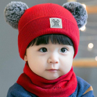SYGA طفل متماسكة قبعة وشاح مجموعة طفل بنات أولاد الشتاء بوم بوم قبعة صغيرة الرقبة أدفأ