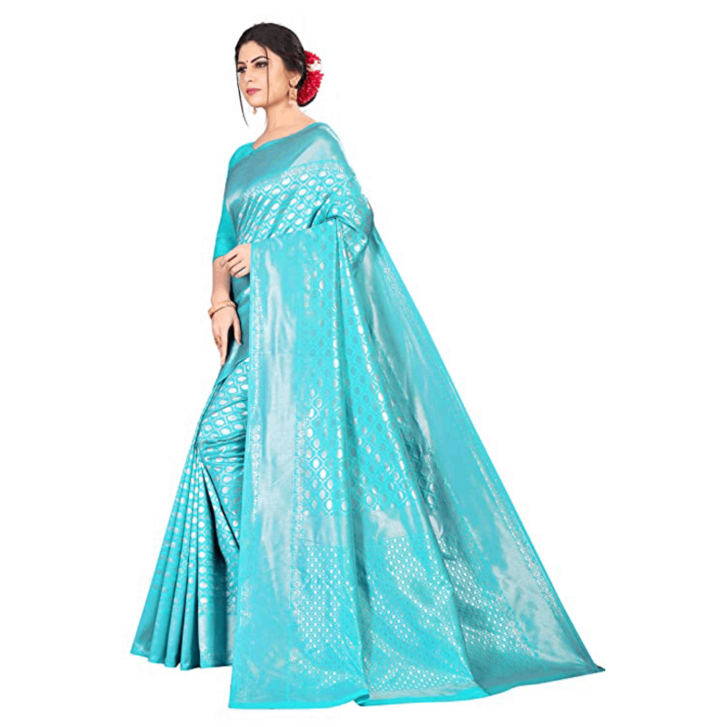 نسيج ساري: أحدث تصميم كانجيفارام الحرير ساري مع الذهبي زاري بوتا على الحدود ، ساري رائع عالي الجودة مع بلوزة جري غير ملطفة