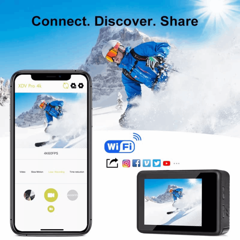 • Professional 4K/60FPS, 2.7K/30FPS, 1080P/120FPS, 720P/120FPS Video, and 20MP photo resolution enable you to capture all your adventures in high resolution. This action camera also comes with a built-in microphone to record audio.