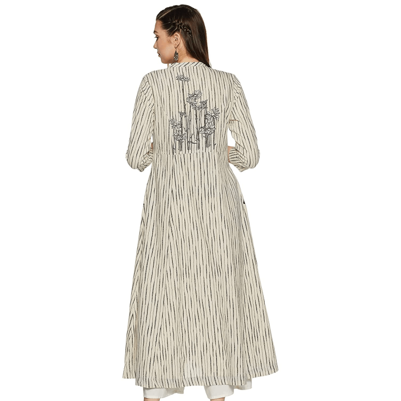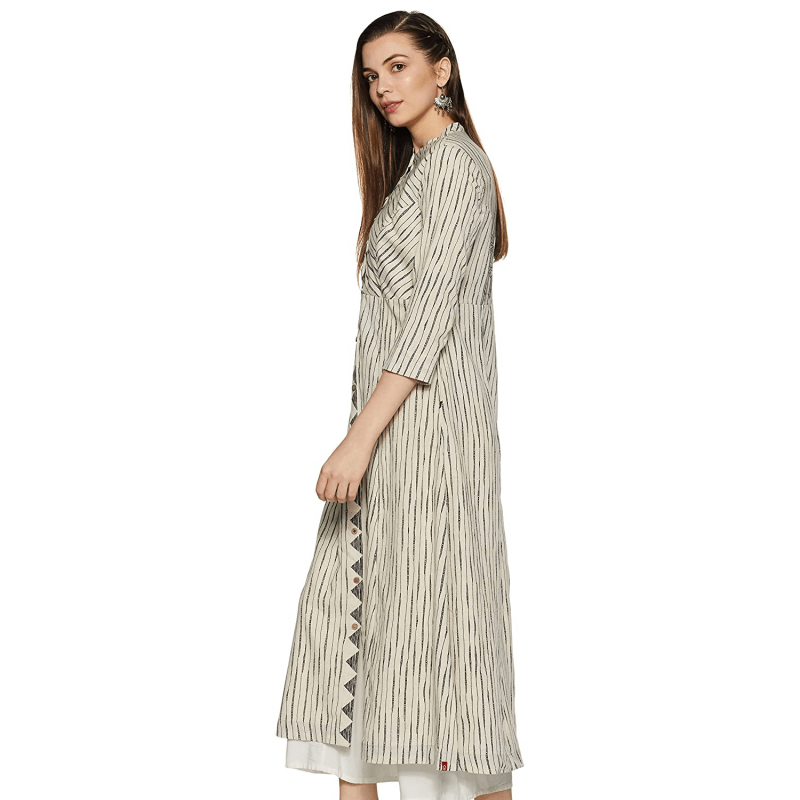 BIBA Women Mandarin Collar Stripe Kurti