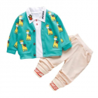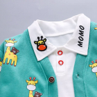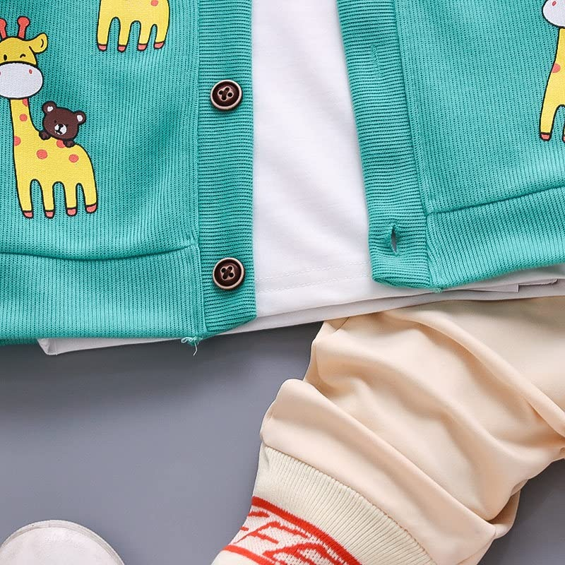 Bold N Elegant Giraffe Cartoon Print Polo T-shirt with Layered Cardigan Jacket & Pants Winter