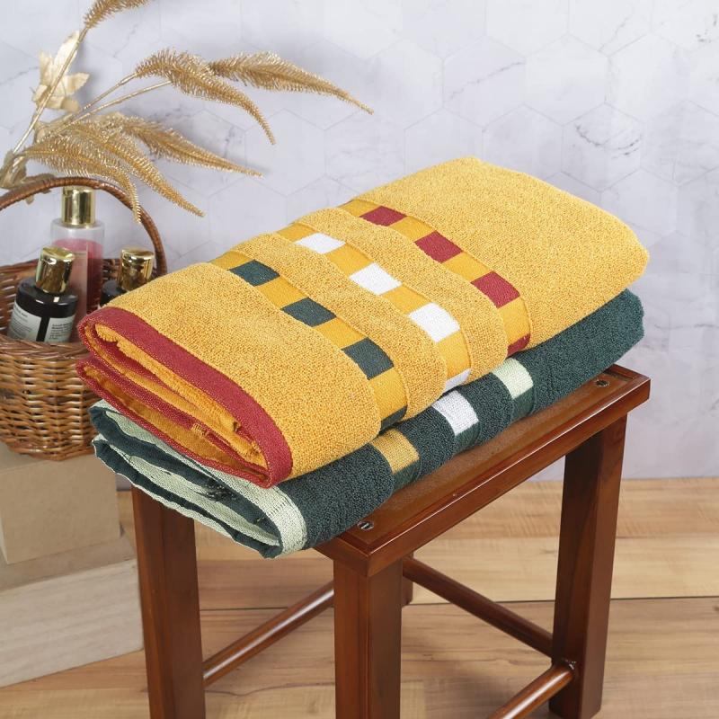 • SPECIAL FEATURES: REASONABLE TOWEL,100% Natural Ring-Spun Finest Cotton Yarn, As Per OEKOTEX Color/Dyeing Norms,450 GSM, Egyptian Jacquard Border, Soft Feel, Big/Spacious Terry Loops For Excellent