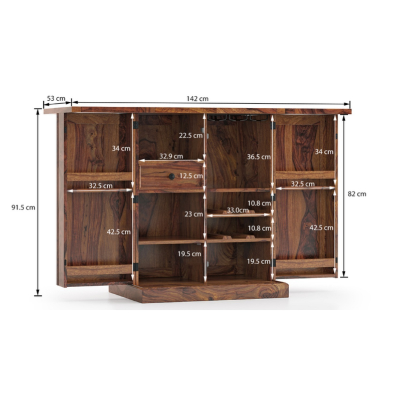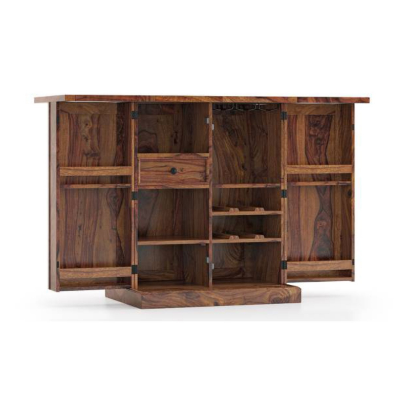 Caledonia Solid Wood Bar Cabinet In Teak Finish