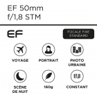 As a fixed, non-zooming lens the EF 50mm f/1.8 STM delivers excellent image quality -enhanced sharpness, more contrast, and less distortion