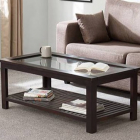 • The glass table top and shelf below help make place for your coffee mugs, daily newspapers and magazines