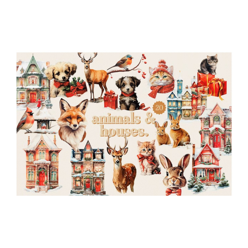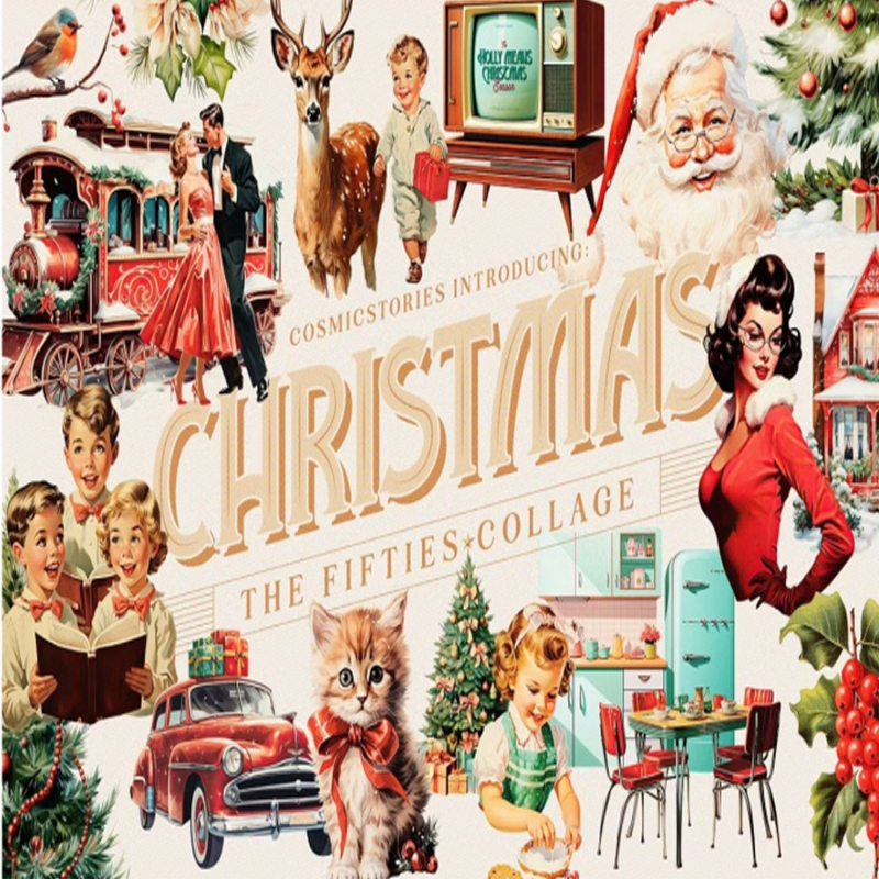 Cosmic Stories proudly introduce a new collage creator recreating the authentic 50's Christmas vibe. Each element is unique and exclusive and has been carefully isolated, working in both light and dark backgrounds. This set includes a huge compilation of classic 50 people, vintage decoration elements and furniture, cute winter animals, and much more. Just drag and drop the elements into your canvas to create your artwork or just use and feel inspired by the premade compositions.