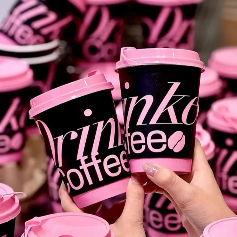 • Customizable Design: Our eco-friendly paper cups allow for custom logo printing in pink lettering, enabling businesses to promote their brand effectively. You can even order a custom design with your company's logo to make your beverage services stand out.