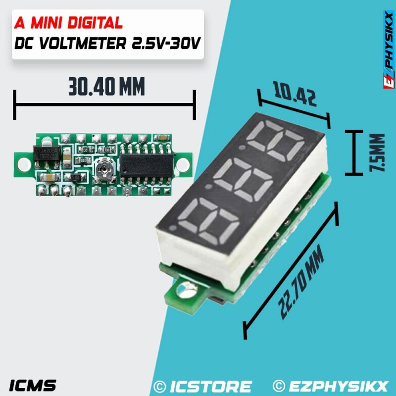 Monitor voltage levels with precision using the DC Voltmeter Indicator (DC 3.5-30V). This compact and easy-to-use digital voltmeter is perfect for measuring DC voltage in a wide range of applications, including battery monitoring, automotive systems, solar power setups, and DIY electronics projects.