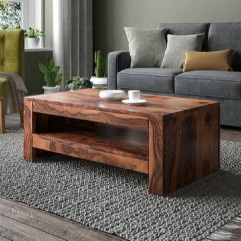 A simple sturdy coffee table with an open shelf