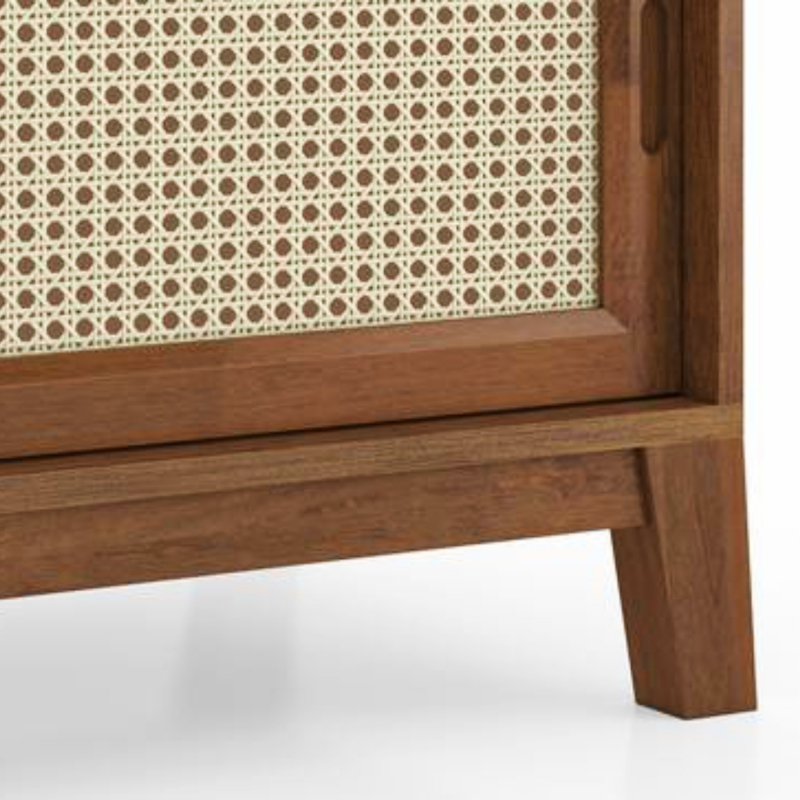 • Come home to Zen. The Fujiwara display cabinet is inspired by the Zen ideal of the middle way - rooted in Japanese design, but embellished with Indian touches. We borrowed the panel-like structure from the shoji screens of Japan, and made it our own by introducing natural, hand-woven cane. The textured wood, the cane, and the gleaming glass surfaces come together in perfect harmony. Just the thing for telling your timeless tales.