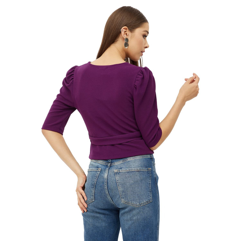 V-Neck Puff Sleeve Wrap Top