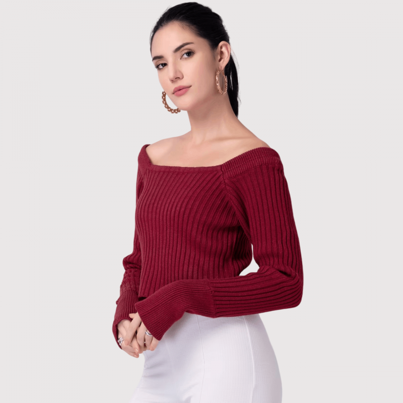 • Features a square neck and full sleeves.