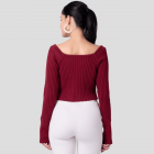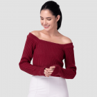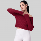 • Red solid cropped sweater in acrylic fabric.