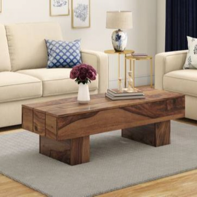 Idris Rectangular Solid Wood Coffee Table In Teak Finish