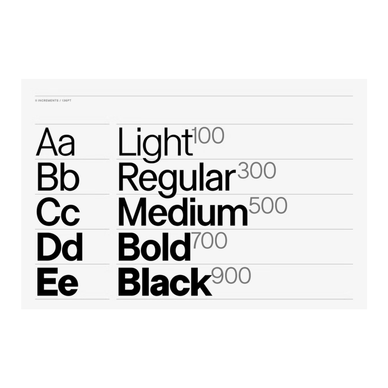 Informed by classic grotesque proportions and principles within the musical theory, II Increments Sans results in a rhythmic and composed sans-serif. Set within a structured grid, the intonation and harmony between its functional principles and emotive characteristics allow use at both text and display sizes.