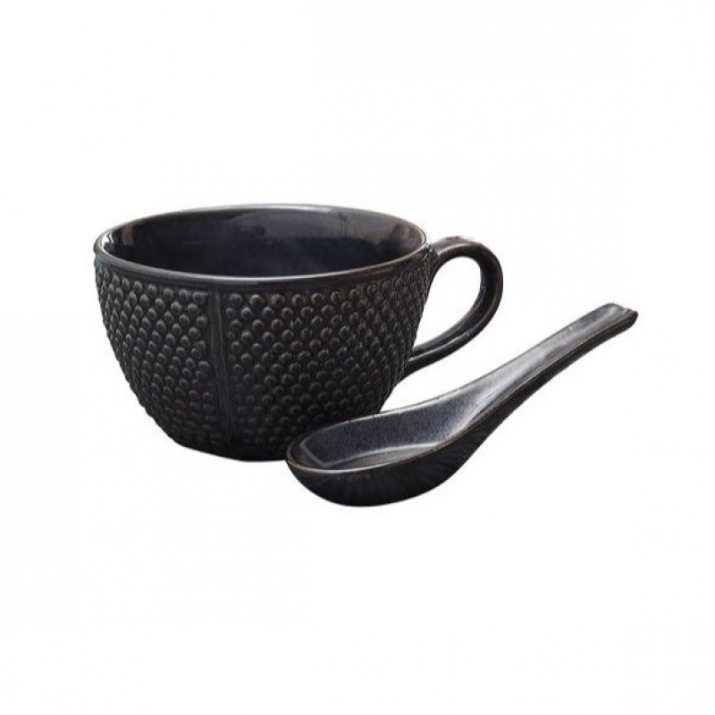 • The rustic browns and the simple design engages the sight, as you forget yourself in the soup.