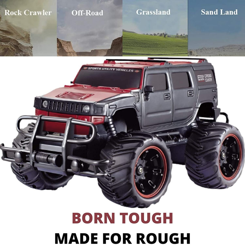 • rc Big and mean rock crawling scale monster truck.With shock suspension system and rubber tires, drive this on road and off road mean machine car