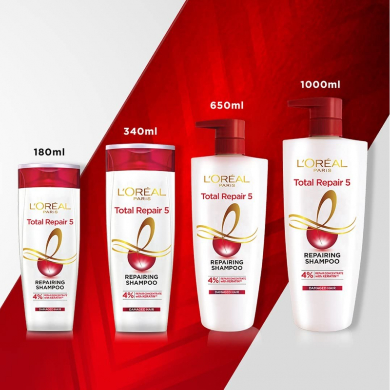 Total Repair 5 shampoo for damaged, dry, lifeless, dull, or weak hair, Fights against the five visible signs of damaged hair: hair fall, dryness, roughness, dullness, and split ends