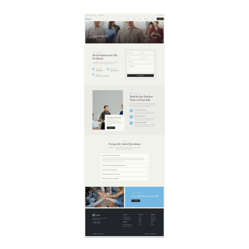 Livea - Life Coach & Speaker Elementor Template Kit created especially for life coaching, speaking websites or any type of business who wants to publish the services in a professional way. Livea has a simple, modern and clean design with 100% responsive layout, and very easy to customize and can be used by anyone without having to understand coding.