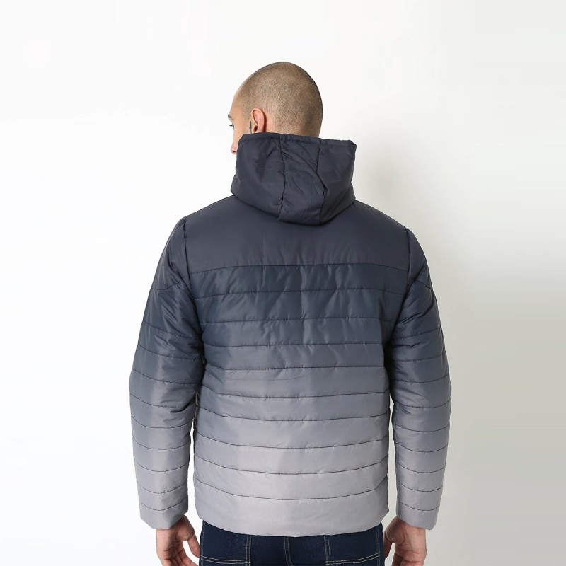 Ombre-Dyed Hooded Puffer Jacket, has a hooded, 2 pockets ,has a zip closure, long sleeves, straight hemline, polyester lining