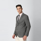 • Grey self design slim fit formal blazer, has a notched lapel collar, long sleeves with buttons, single breasted with button closures,2 mock pockets with flaps ,1 pocket on chest and 2 internal pockets, attached lining, double vented back hem.