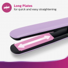 Quick and smooth styling with ceramic plates infused with titanium allows for fast heat transfer and smooth gliding through the hair
