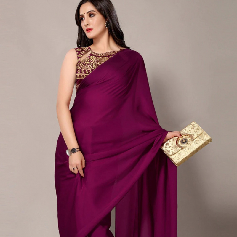 • Solid saree with no border