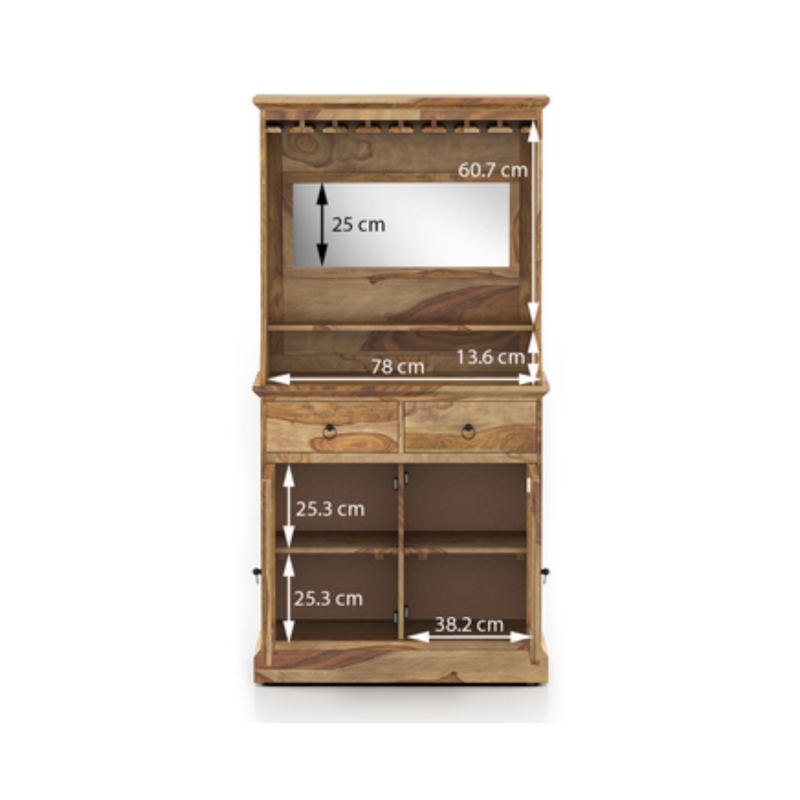 Sophisticated home bar perfect for the next big party. Riviera solid wood sheesham bar cabinet is an excellent furniture to house glasses, liquor and wine bottles. The sturdy sheesham wood design will amp up the elegance of your home.