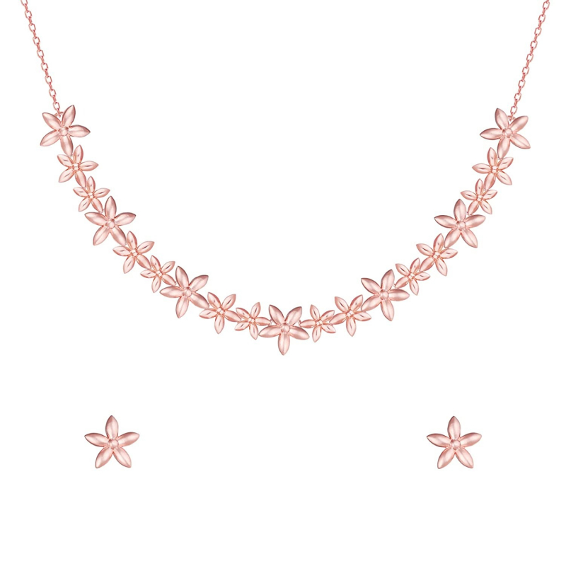 • PRODUCT DETAILS : Made of 925 Silver with Rose Gold Plating, Contains one pair of earrings and a necklace. AAA+ Quality Zircons. Perfect for sensitive ears. Length of necklace is 45 cm with 5 cm adjustable portion, Dimensions: 1.1 cm x 1.1 cm. Rhodium finish to prevent tarnish