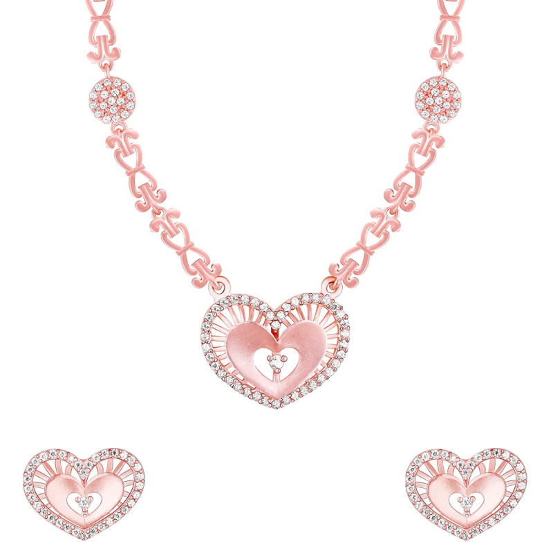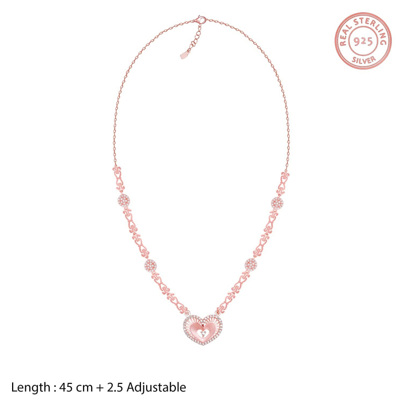 • PRODUCT DETAILS : Made of 925 Silver with Rose Gold Plating, Contains a necklace and a pair of earrings, Earrings dimensions: 1.22 cm x 1.63 cm, The length of the necklace is 45 cm with a 2.5 cm adjustable portion. Necklace Charm Dimensions: 1.73 cm x 1.94 cm