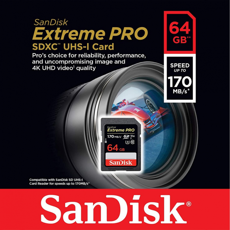 And, because your pace doesn’t let up after the shots are in, it delivers up to 170MB/s* [64GB-512GB] transfer speeds for a faster post-production workflow. Requires a compatible device capable of reaching such speeds, such as the SanDisk SD UHS-I Card Reader (sold separately).