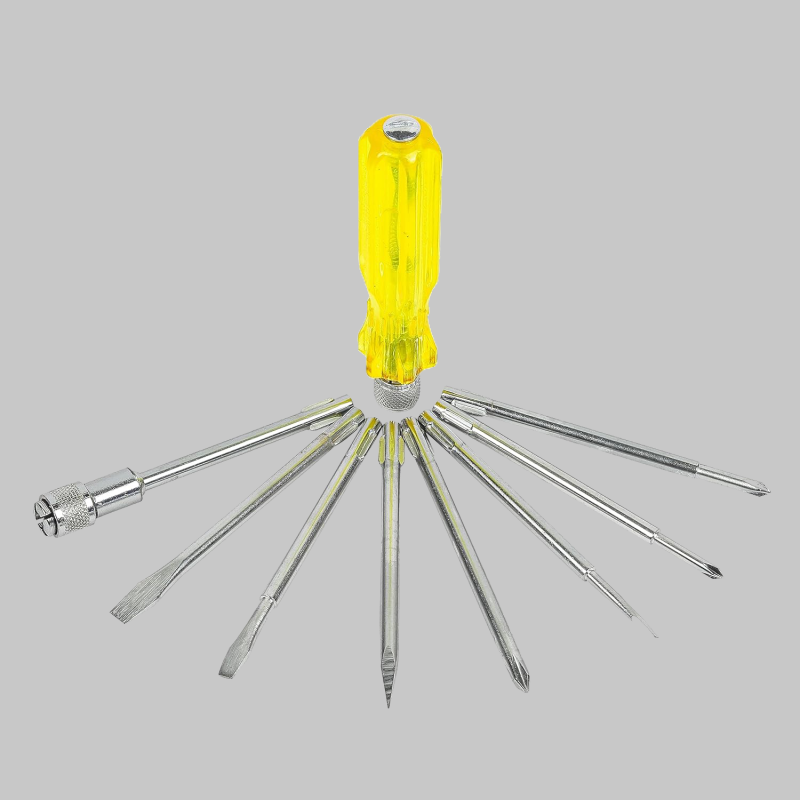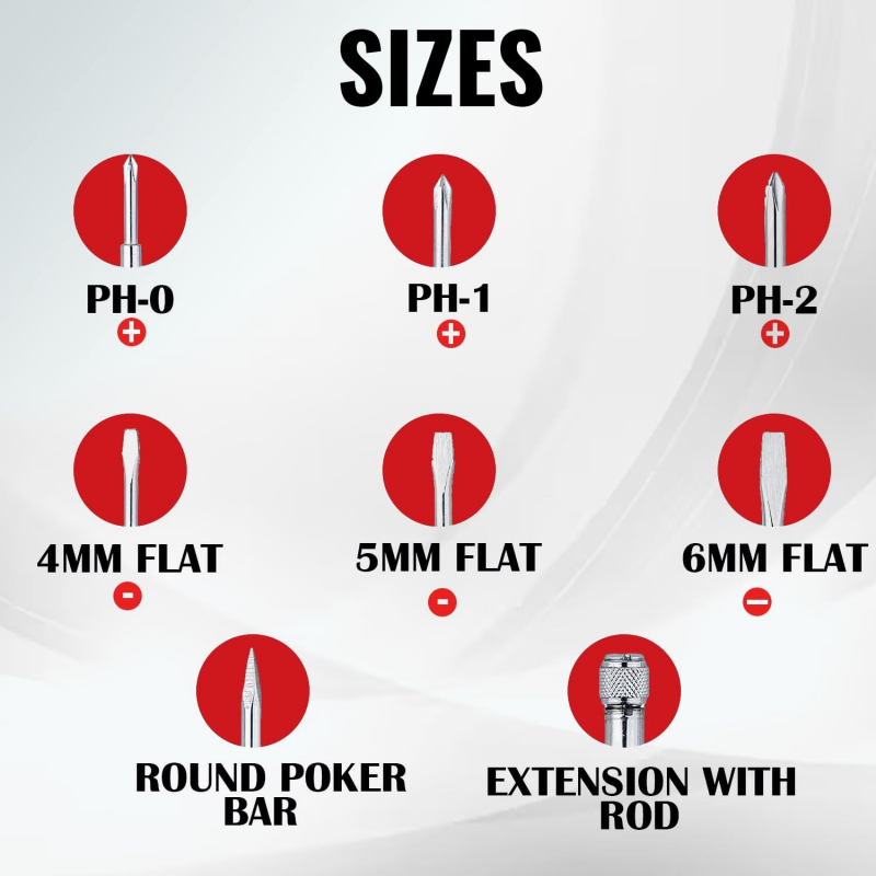 • 8-IN-1 PIECE SCREWDRIVER KIT: Spartan BS-02 Screw Driver Kit contains 3 flat blades of 3mm, 5mm and 6mm, 2 Phillips heads of PH0, PH1 and PH2, an extension rod, and a round poker bar with a transparent PVC handle.