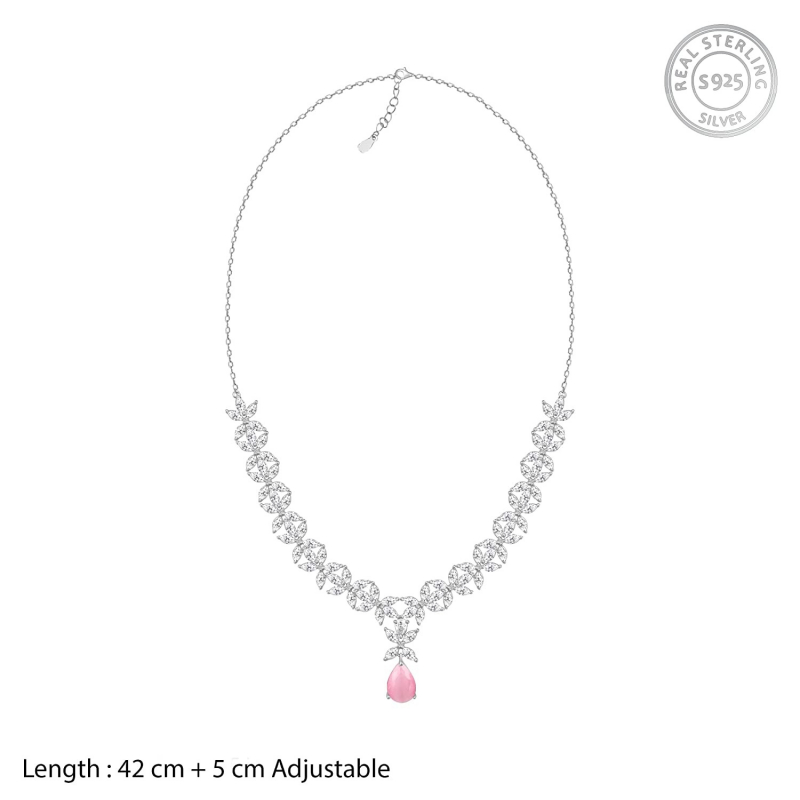 • PRODUCT DETAILS : Made of 925 Silver, Contains a necklace and a pair of earrings, AAA+ Quality Zircons. Hypoallergenic - Perfect for sensitive skin, Dimensions: 4 cm x 1.2 cm. The length of the necklace is 42 cm with a 5 cm adjustable portion